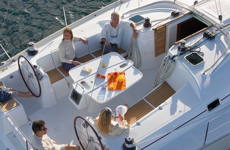 Die ebenfalls sehr große 110 qm Segelfläche macht das Segeln kinderleicht. Rollgenua Vorsegel und Rollgroß Hauptsegel unterstützen die Wendigkeit.