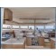 Ein innovatives Salonkonzept auf zwei Ebenen, das zwei separate, aber nicht abgeschlossene Bereiche bietet: Eine große Pantry am Cockpit auf der einen Seite, und eine leicht erhöhte Sitzgruppe für noch bessere Panoramasicht auf der anderen Seite, die sich zudem wenn gewünscht ganz einfach in einen Essbereich umwandeln lässt.